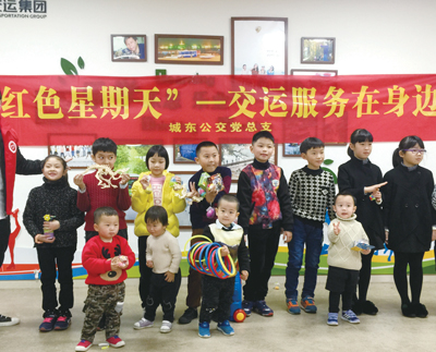 城东公交注重激活基层党员“红色细胞”,引导各党组织和党员干部在各项工作中切实转变工作作风,不断增强服务大局、服务发展的能力,为城东公交创新发展注入源源不断的“红色动力”。组织动员党员凝聚志愿服务共识,积极投身“红色星期天”、 “绿色出行优选公交”、“盲人残障共融体验日”、“大手牵小手”等志愿活动。今年8月份创新开展“公交服务进社区”宣传活动,每月到社区宣传安全乘车出行知识和绿色交通环保理念。