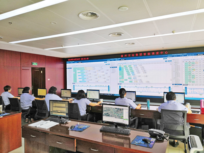 智能调度中心是未来公交运营的核心基础,更是公交线路在运行指挥、行车控制、路况监控等一系列线路运营过程中的重要环节。目前快速公交已有15名调度员入驻智能调度中心,可远程管控18条快速公交线路合计349台公交车的营运状况。调度员还在中心远程联动公交车内GPS系统,实时掌握车辆的运行轨迹和所在位置,并利用平台随时发布指令,灵活调整发班频率。如遇车辆营运中有特殊情况,驾驶员也可按车上装载的“一键报警”快捷键,便于调度中心第一时间接收到信息,并作出相应的调整和处理。与此同时,每辆公交GPS内还装配有异常预警模块,可自动对大间隔、车辆超速、两车过近等现象进行即时反馈,并向驾驶员推送语音提示。 刘胜跃 赵远